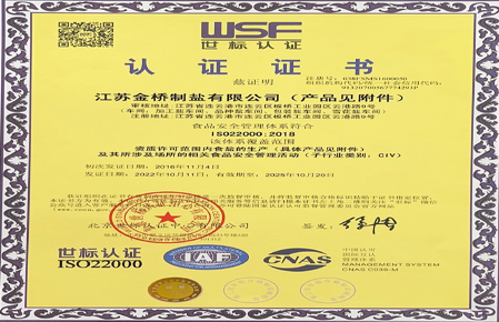 • 江蘇金橋制鹽公司通過管理體系審核認(rèn)證